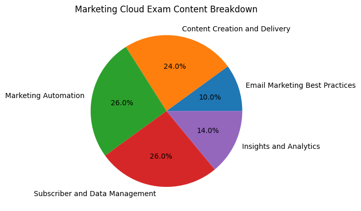 Content Creation and Delivery tests the ability to move from strategy to execution. Candidates must select appropriate Marketing Cloud tools (Email Studio, Content Builder, etc.) based on sending requirements, customize messaging to meet business needs, configure send settings properly, and manage campaign content efficiently. This area blends creative, technical, and operational skills — making it one of the most hands-on components of the exam.